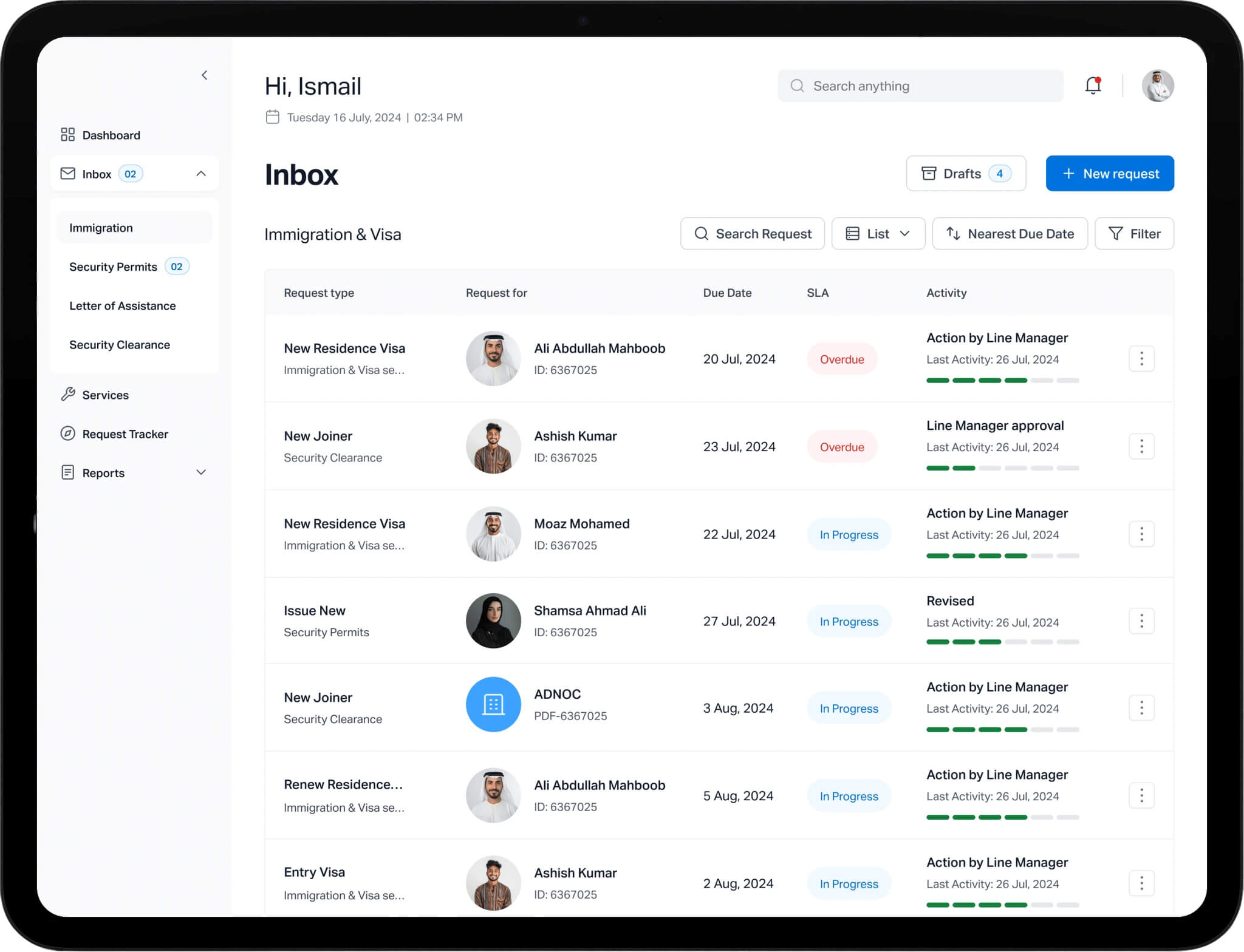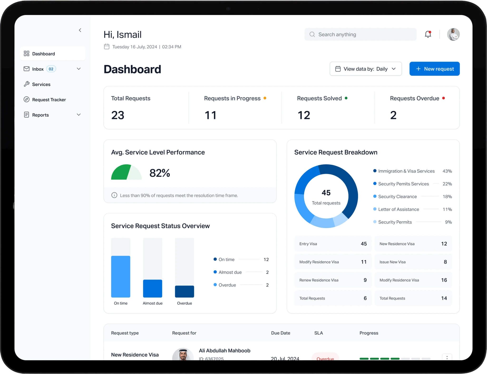 Dynamic SLA tracking highlights deadlines and breach risks in real time, enabling proactive decisions instead of reactive firefighting.