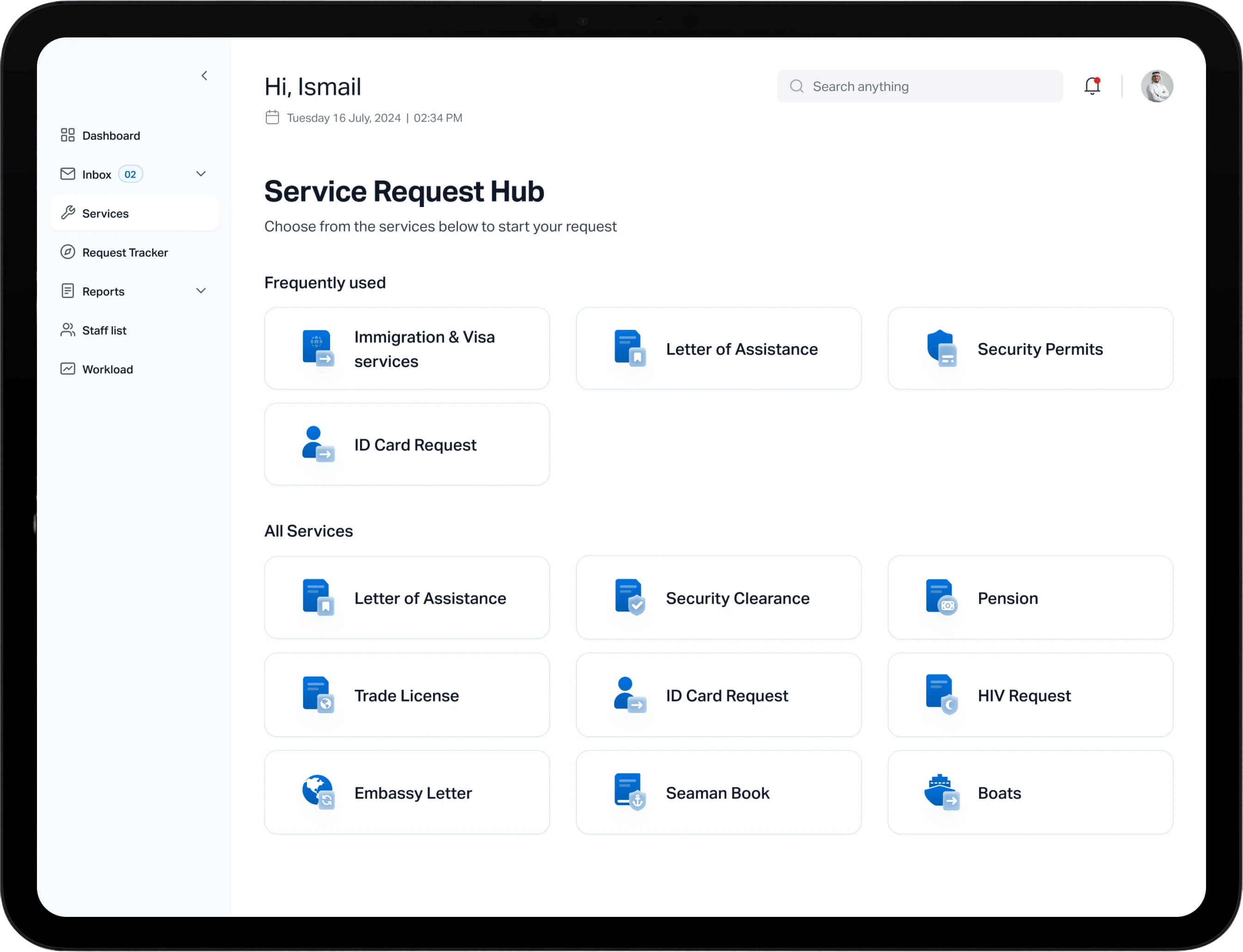 Dedicated workspaces give Managers, Supervisors, and Staff the exact tools and insights they need to act with confidence. Each interface is designed around responsibilities, enabling users to monitor performance, review pending actions, and manage service workloads without distraction.